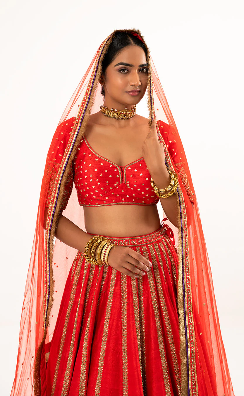 Zardozi Embroidered Silk Lehenga Choli Set with Net Dupatta