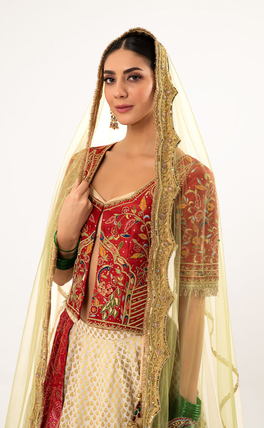 Embroidered Lehenga Set with Hand Embroidered Koti, Blouse, and Dupatta
