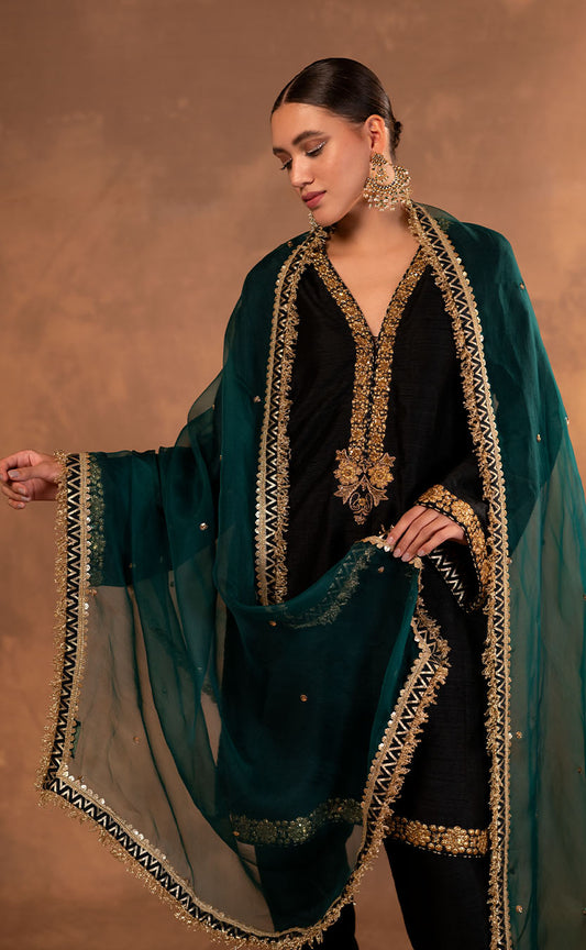 Zardozi Embroidered Kurta with Pakistani Salwar and Dupatta