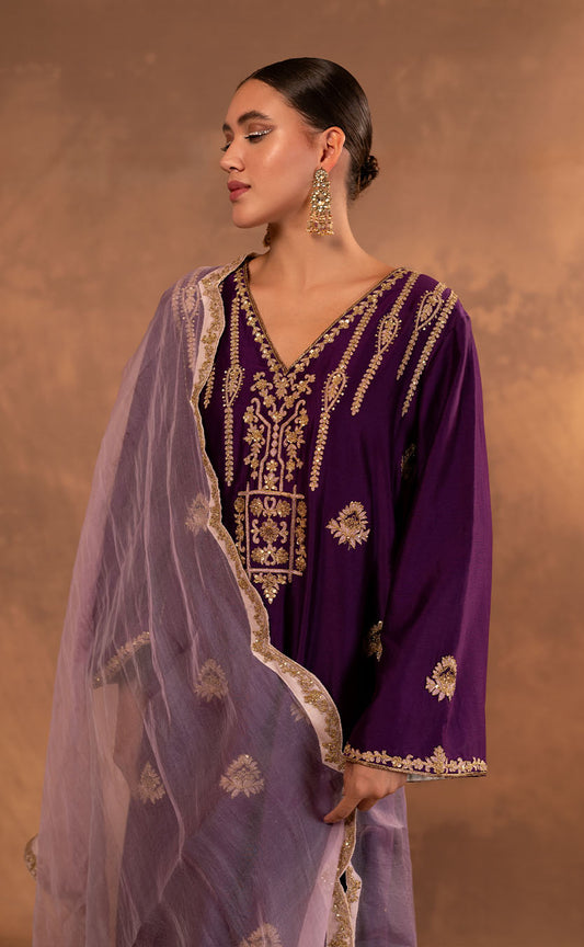 Fine Silk Kurta Set with Sharara and Organza Dupatta