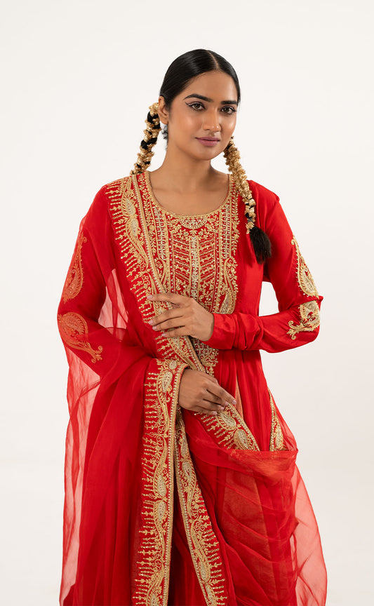 Hand Embroidered Silk Kurta Set with Banarasi Garara and Dupatta