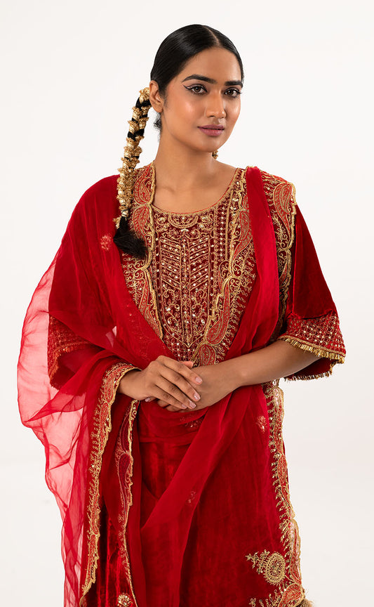 Long Velvet Kurta Set with Crepe Salwar and Organza Dupatta