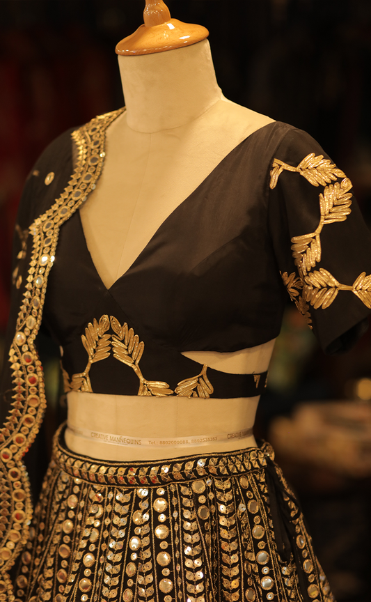 Gota Fabric Blouse Lehenga Set with Zardozi Embroidery and Double Dupatta